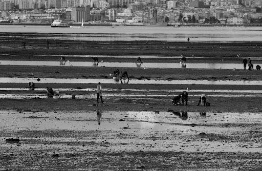 Parecem caranguejos na maré baixa.